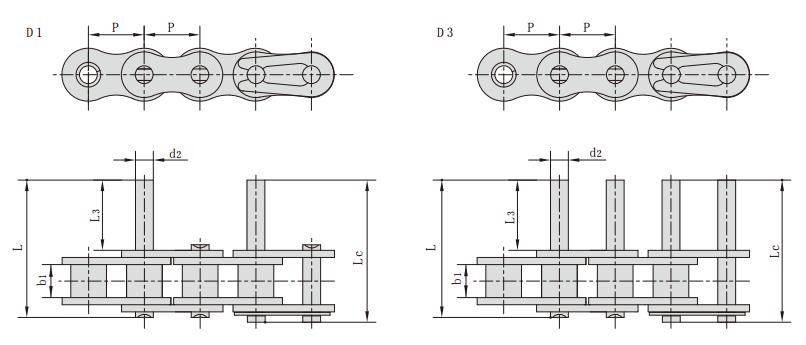 不銹鋼雙節(jié)距加長軸輸送鏈